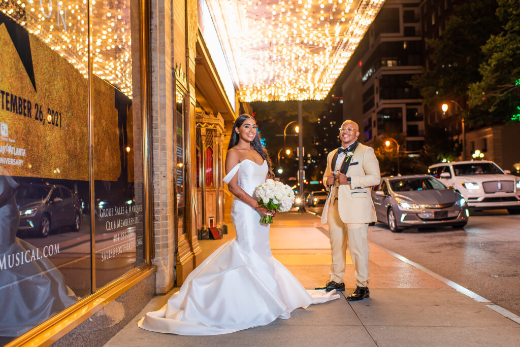 Their fusion wedding at the Fox Theatre celebrated the coming together of cultures within one of Atlanta’s most iconic and dramatic venues. Known for its ornate architecture, rich history, and theatrical scale, the Fox Theatre set the stage for a celebration that felt expressive, elevated, and deeply meaningful.