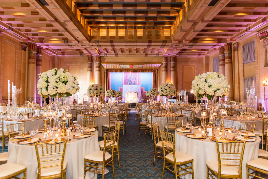 Designed by House of BASH, an Atlanta wedding planner and wedding florist, this Fox Theatre wedding reflected Ashmeer & Samuel’s vision for a fusion celebration that honored tradition while embracing a bold, elevated setting. The final result delivered a wedding experience that felt dramatic, intentional, and unforgettable.