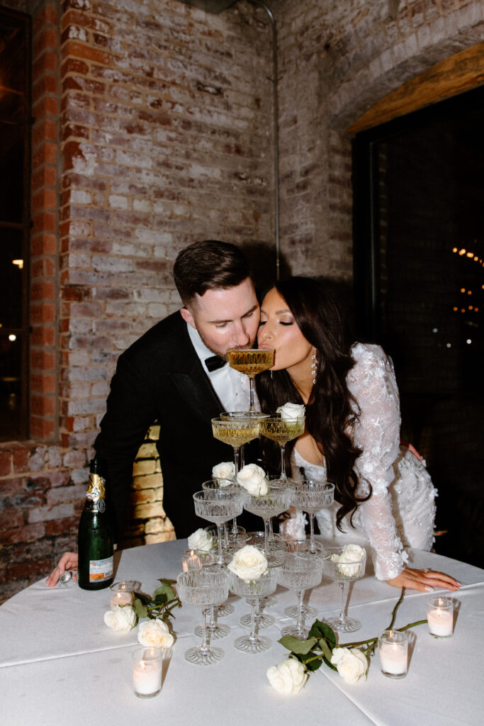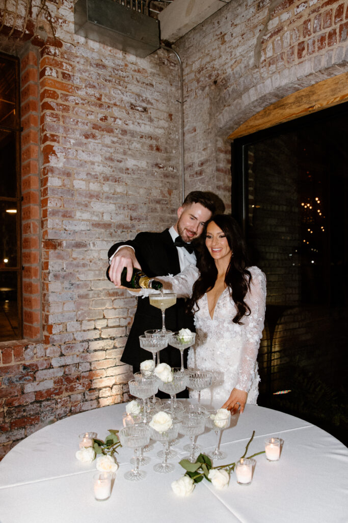 Their wedding at Guardian Works embraced a modern, design-forward approach within an industrial setting. Known for its clean lines and architectural presence, the venue provided a strong foundation for a celebration that felt intentional, elevated, and visually striking. The overall aesthetic balanced structure with softness, allowing each design element to feel purposeful.