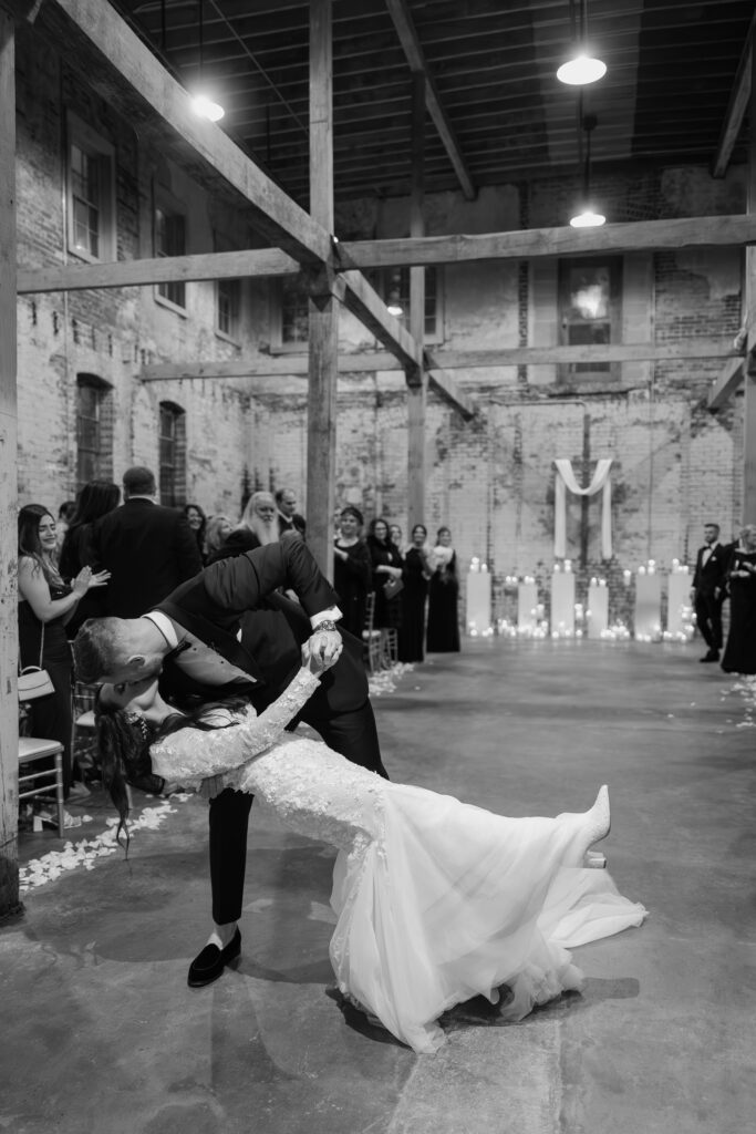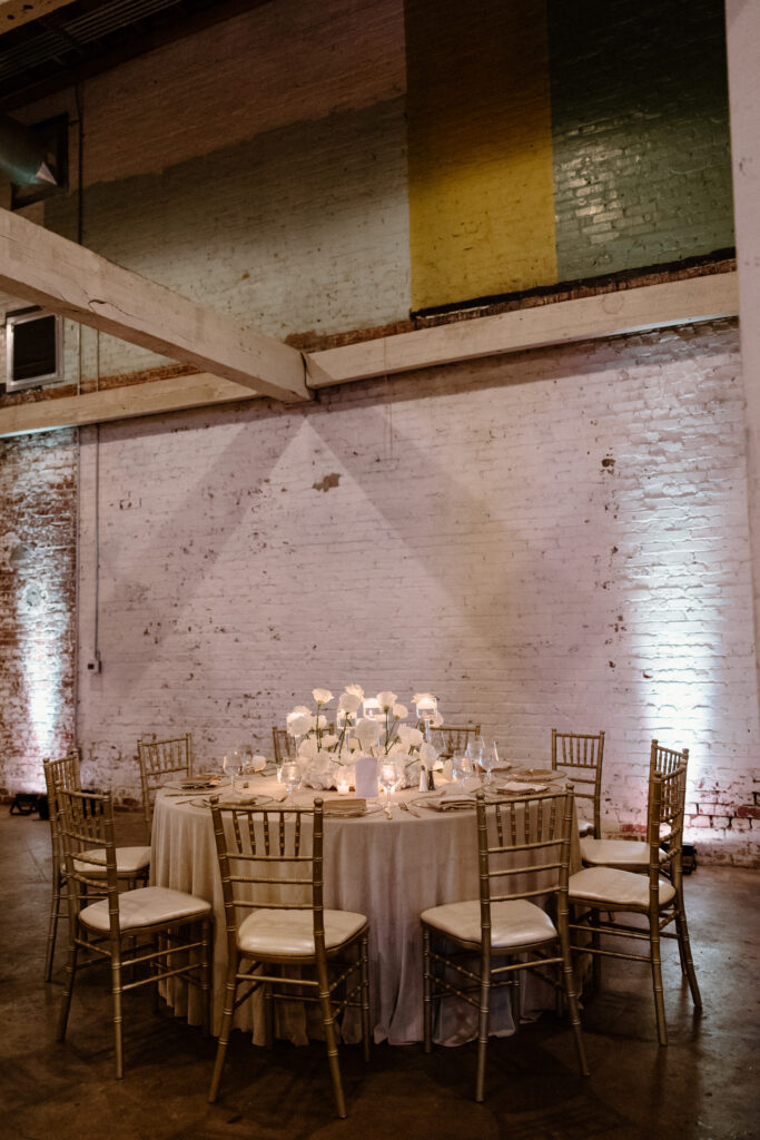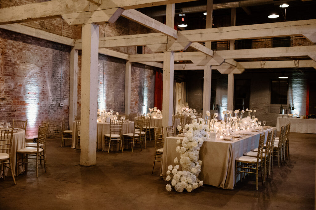 Throughout the wedding day, the design emphasized flow and clarity. Each transition felt natural, and every detail supported the overall vision. Consistent tones and materials connected the ceremony and reception while allowing the venue’s industrial character to remain a focal point. Nothing felt excessive or forced. Instead, the experience unfolded with ease.